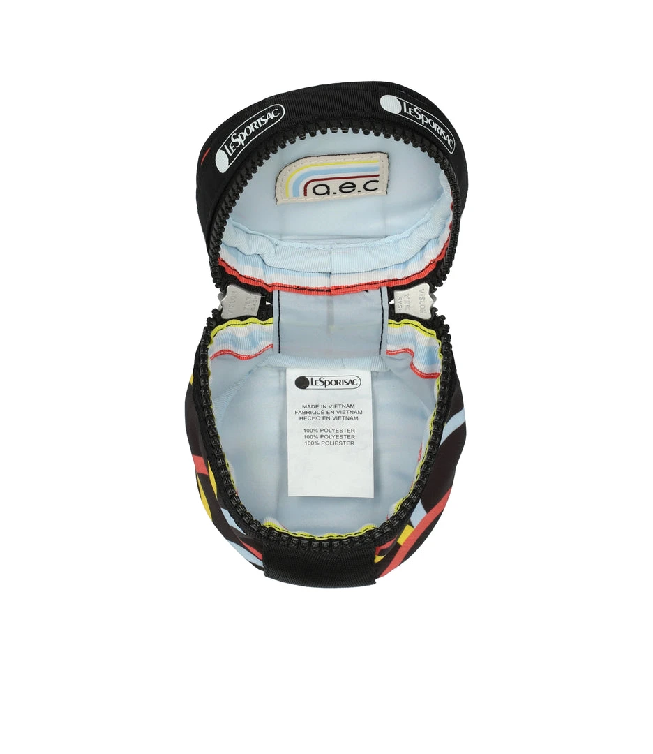Zip main closure with dual zipper pulls, Interior features a removable plush watch insert (for storing or transporting your favorite wristwatch)