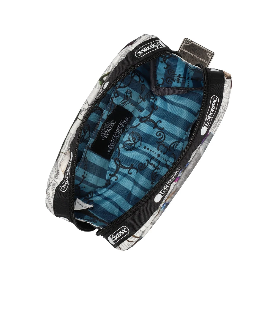 Zipped main closure, Interior back wall open pocket, Two interior front wall open pockets