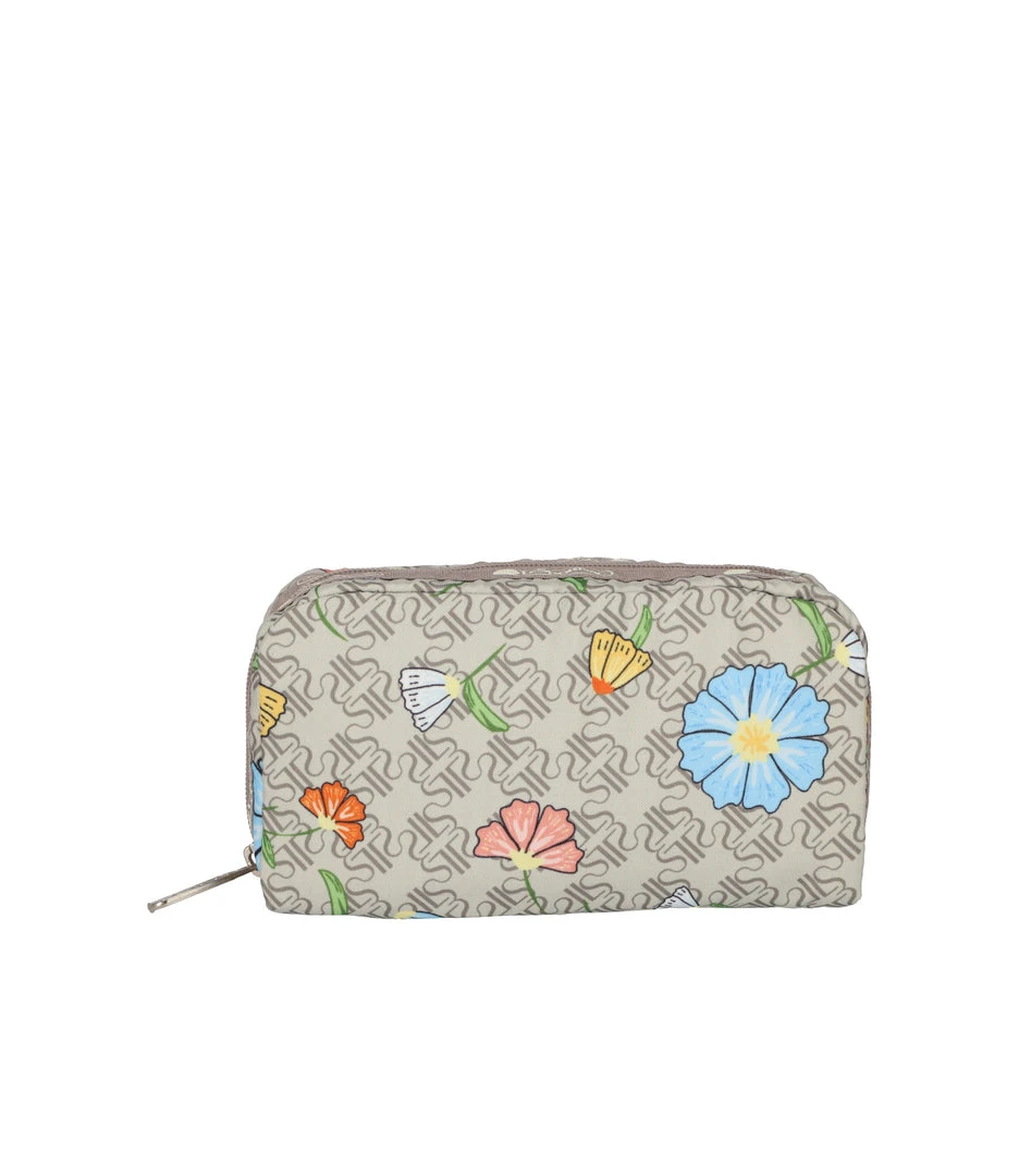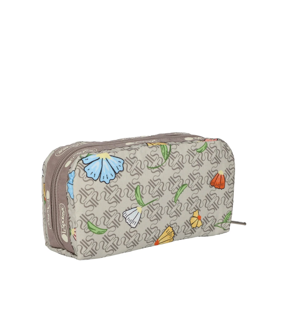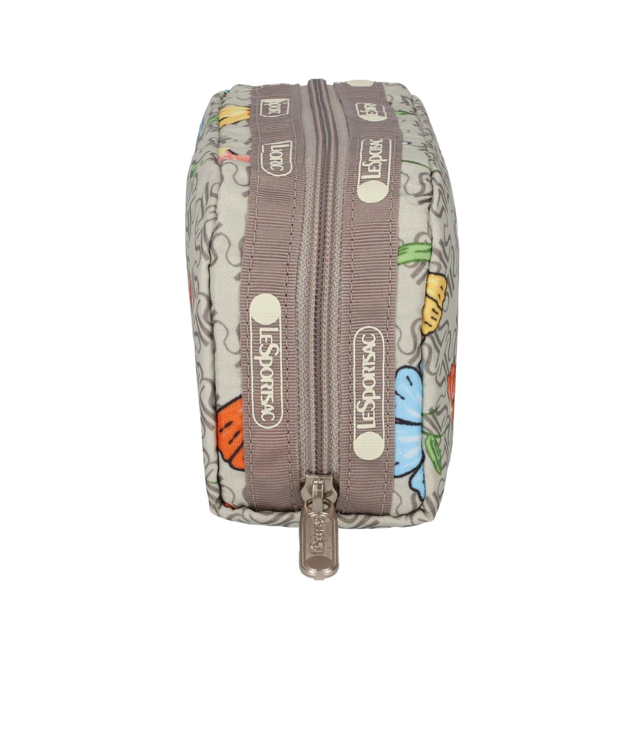 Zipped main closure, Interior back wall open pocket, Two interior front wall open pockets