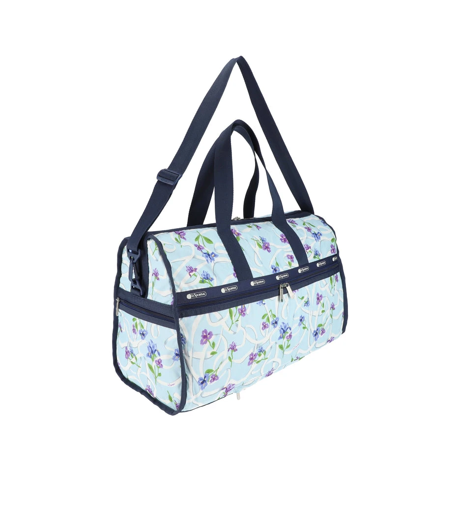 Zip main closure with dual zipper pulls, 8.5in (21.59cm) Top handle drop, 1.5in (3.81cm) Wide adjustable/detachable crossbody strap (Max. 42in/106.68cm), Exterior front panel zipper pocket, Exterior back panel zip closure pocket with dual zipper pulls and a bottom zipper to convert pocket into a sleeve (to slide over rolling luggage handles), Two exterior side pockets with zip closures, Three interior front wall open pockets, Interior back wall combination zip/open pocket