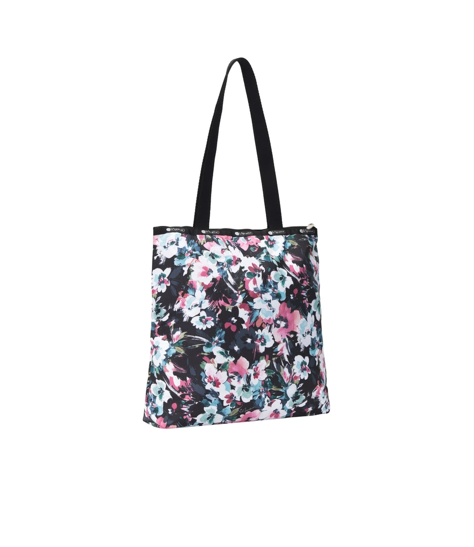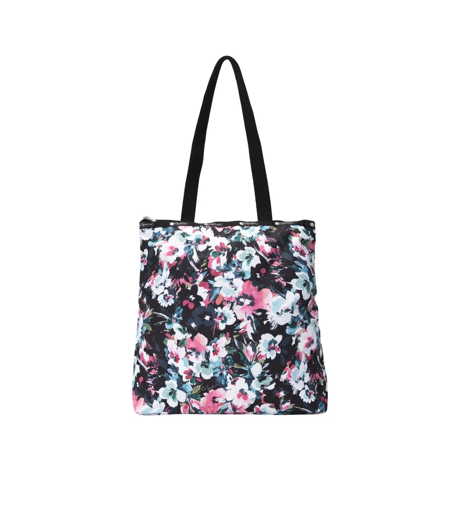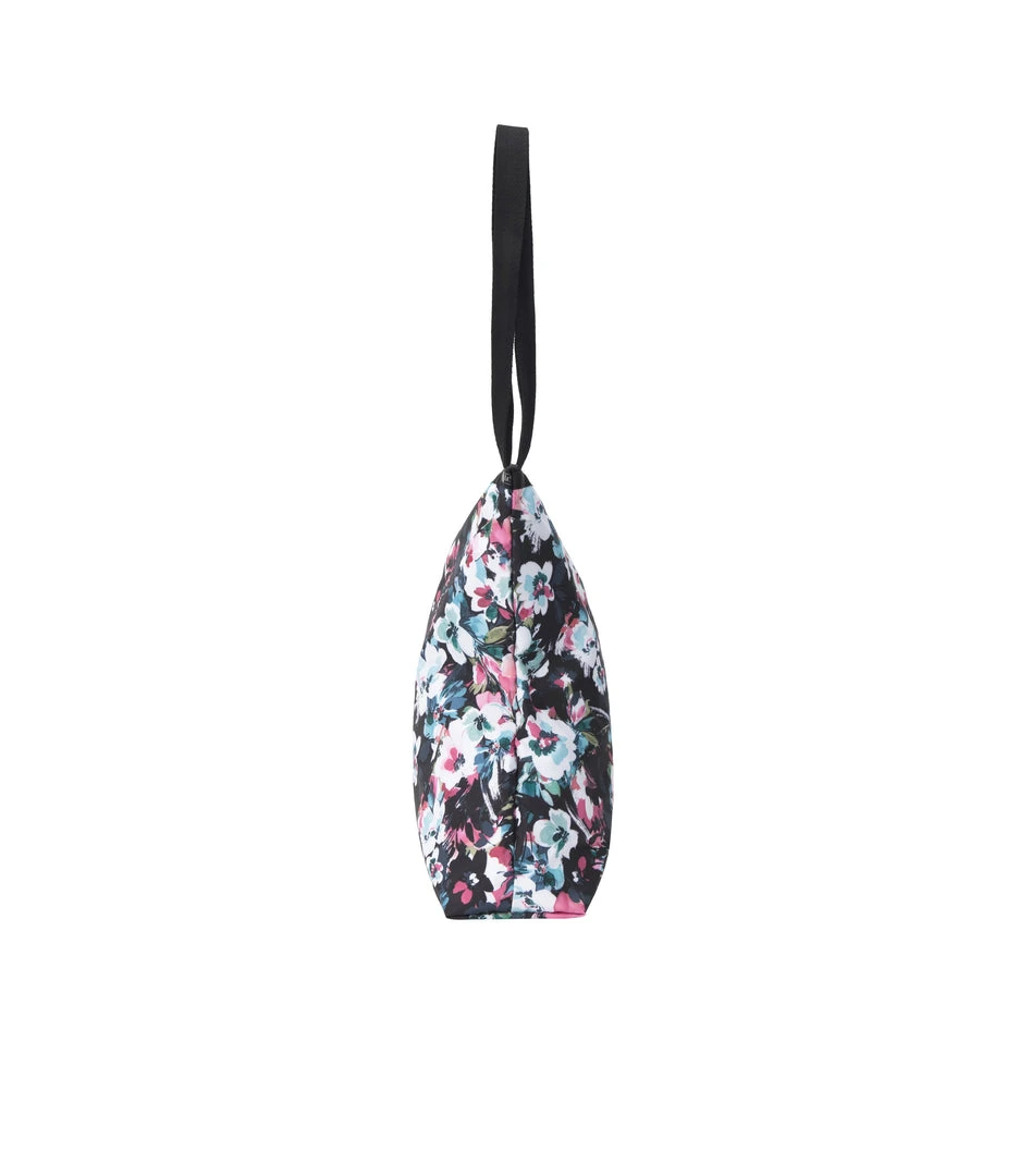Zipped main closure, 1in (2.5cm) wide top handles (Length: 24.6 in/62.5 cm), Interior back wall combination zip/open pocket