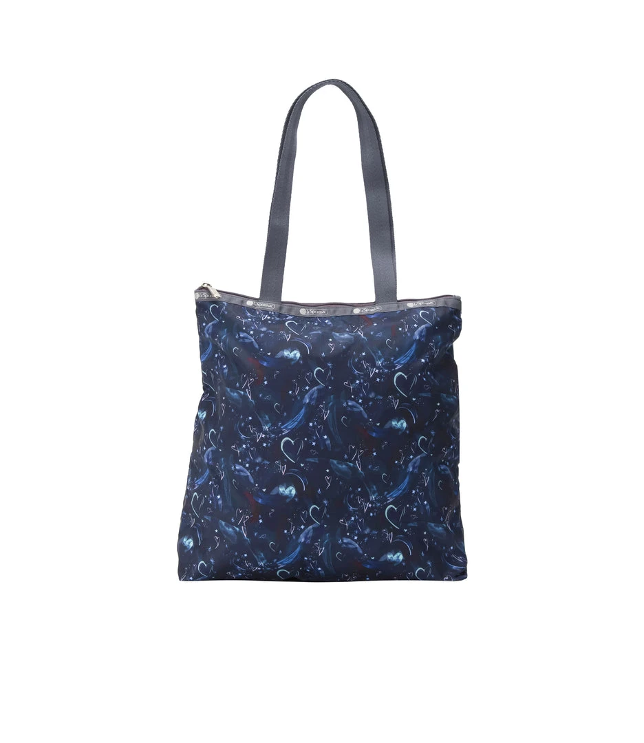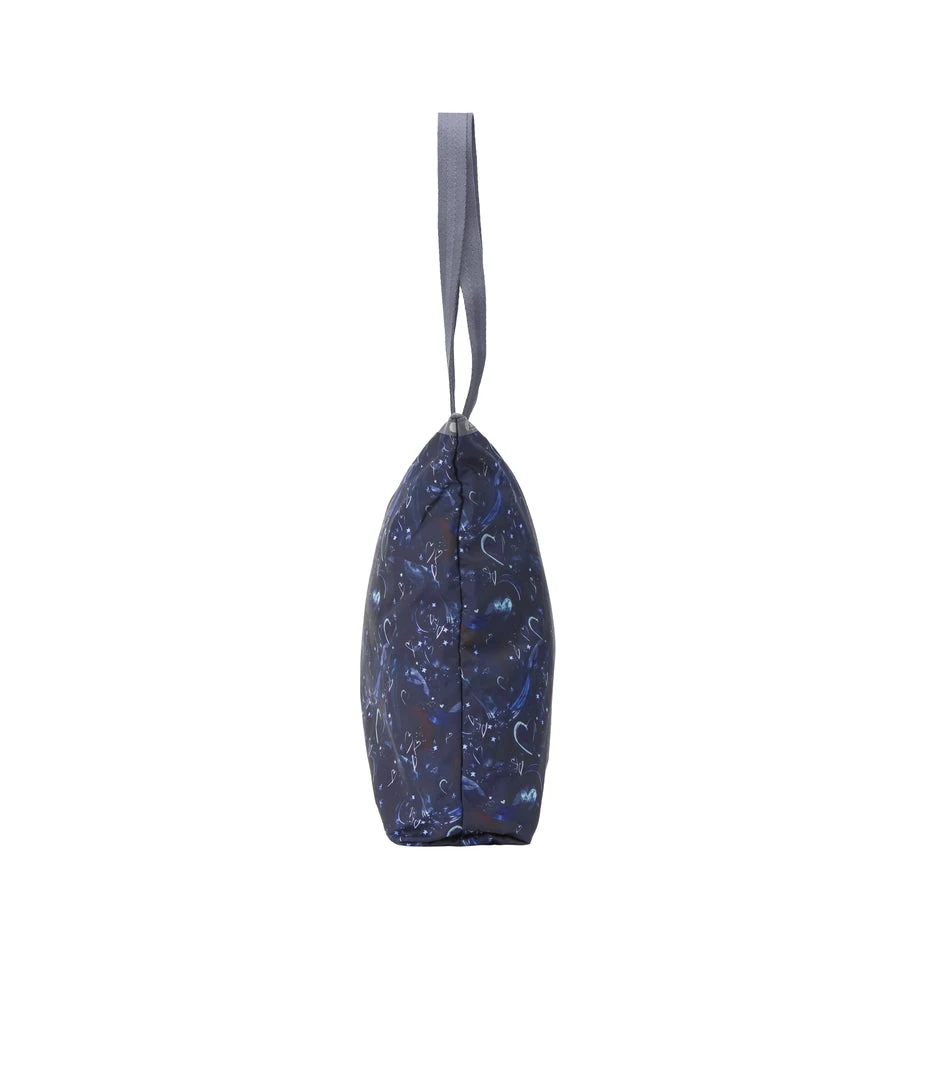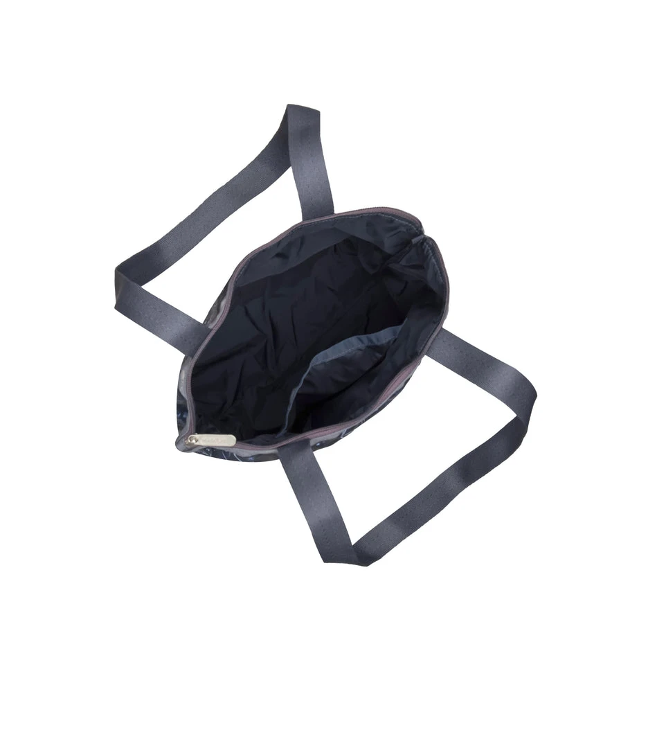 Zipped main closure, 1in (2.5cm) wide top handles (Length: 24.6 in/62.5 cm), Interior back wall combination zip/open pocket