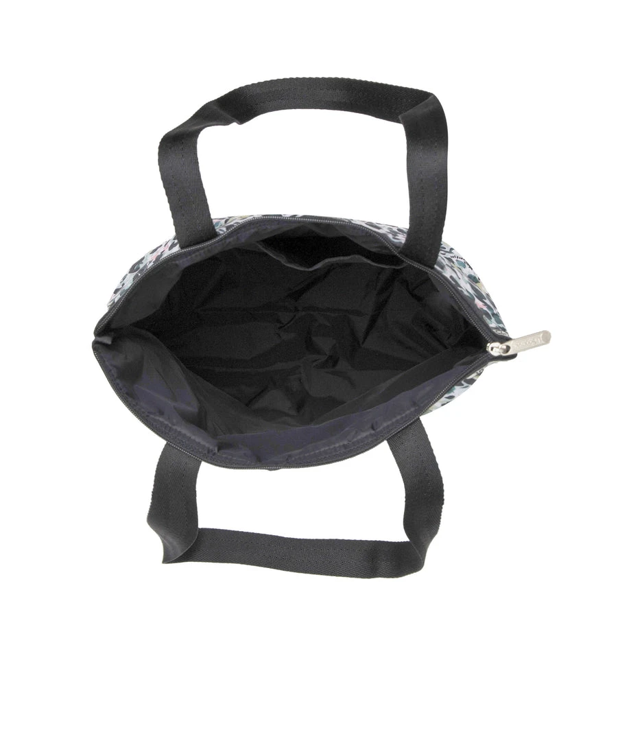 Zipped main closure, 1in (2.5cm) wide top handles (Length: 24.6 in/62.5 cm), Interior back wall combination zip/open pocket
