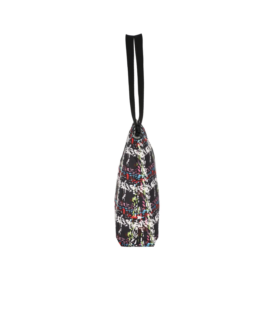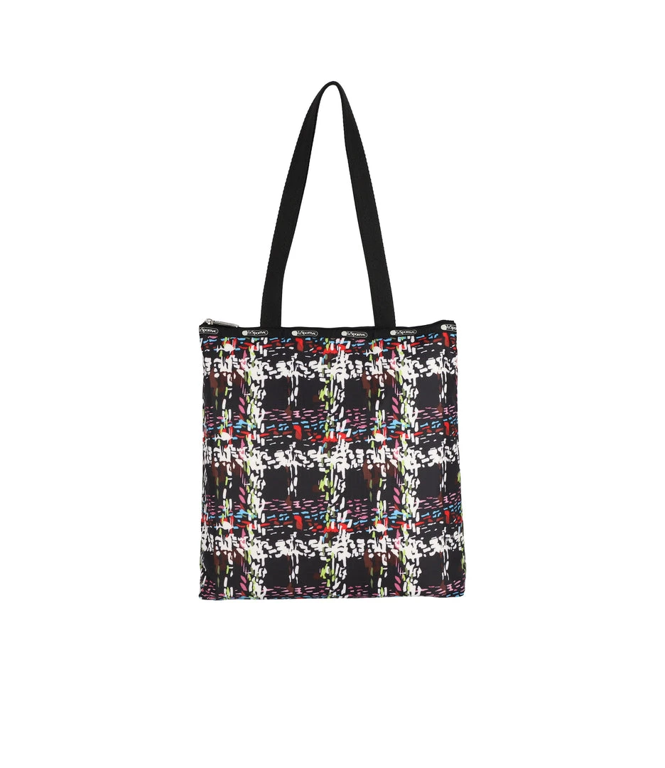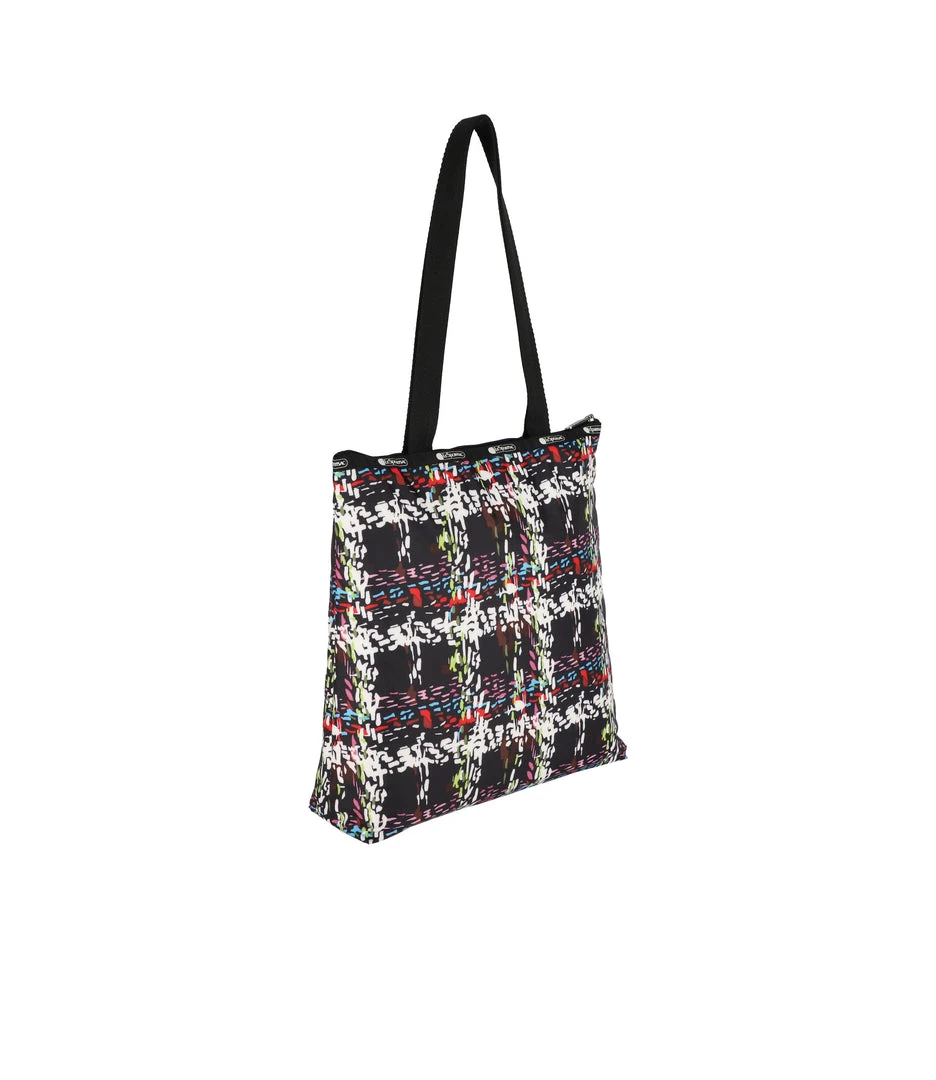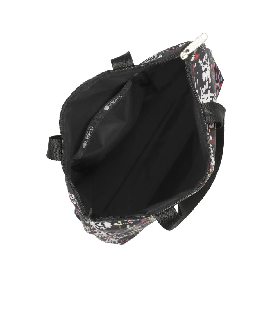 Zipped main closure, 1in (2.5cm) wide top handles (Length: 24.6 in/62.5 cm), Interior back wall combination zip/open pocket
