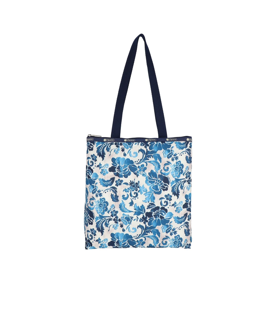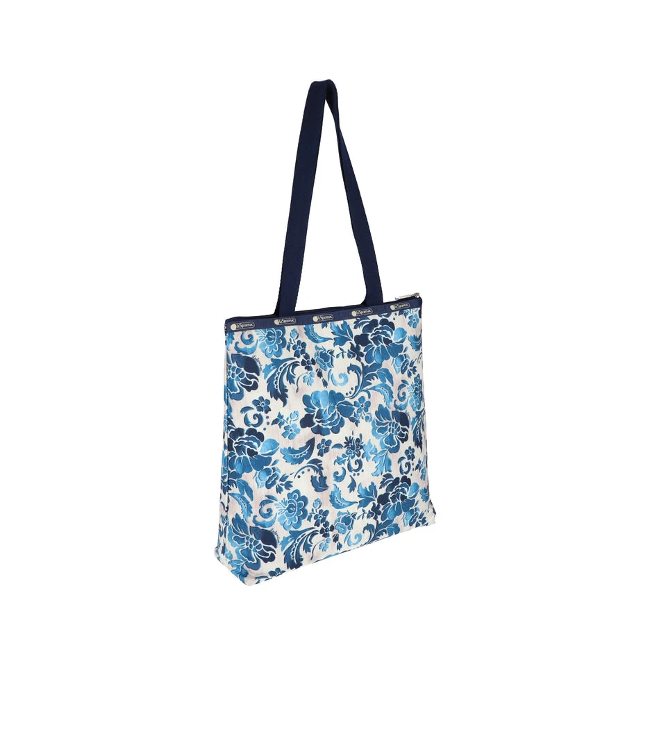 Zipped main closure, 1in (2.5cm) wide top handles (Length: 24.6 in/62.5 cm), Interior back wall combination zip/open pocket