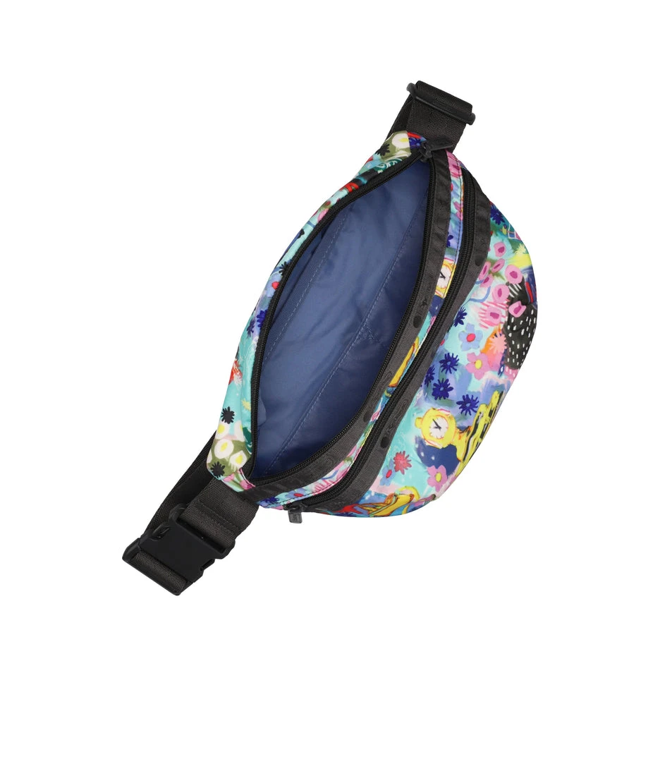 Zip main closure, Exterior front zip pocket, Two interior back wall open pockets, 1.5in/3.8cm wide adjustable belt strap (Max length: 45.27 in/115 cm, Min length 30.7 in/78 cm)