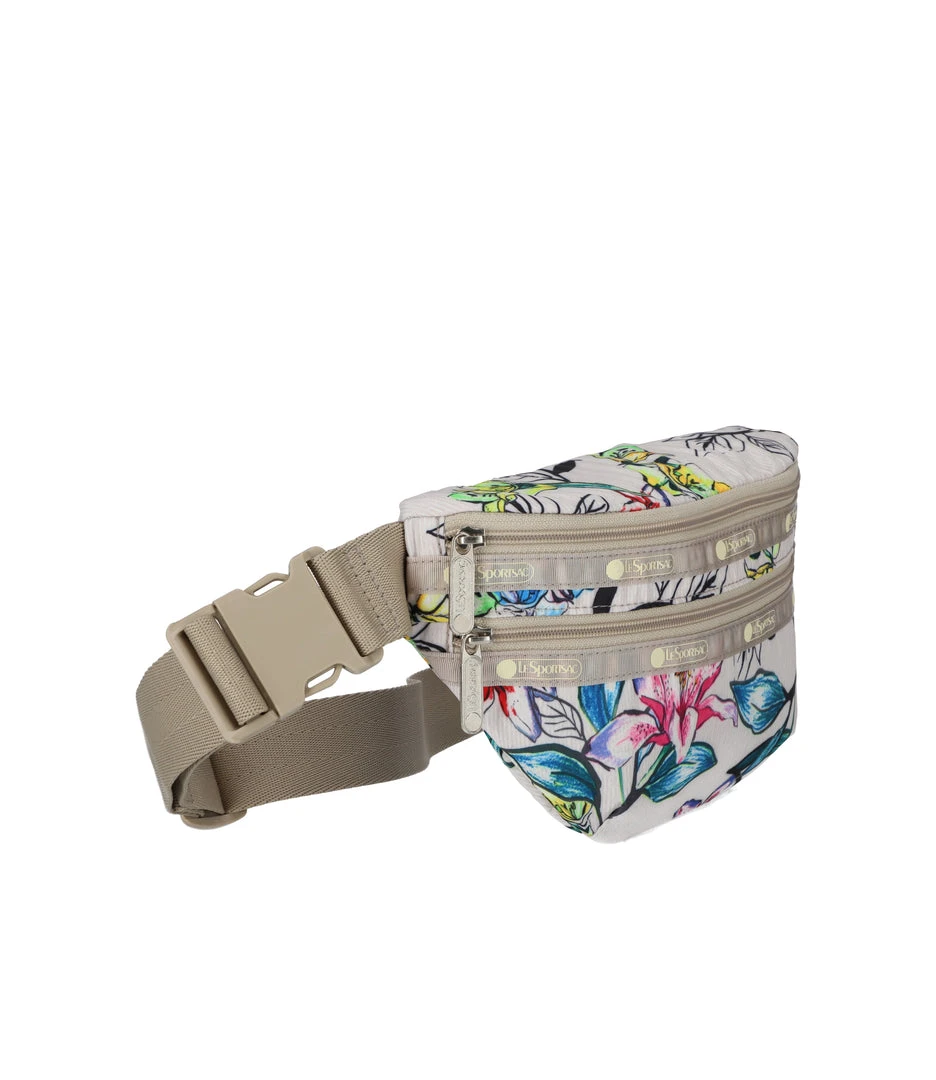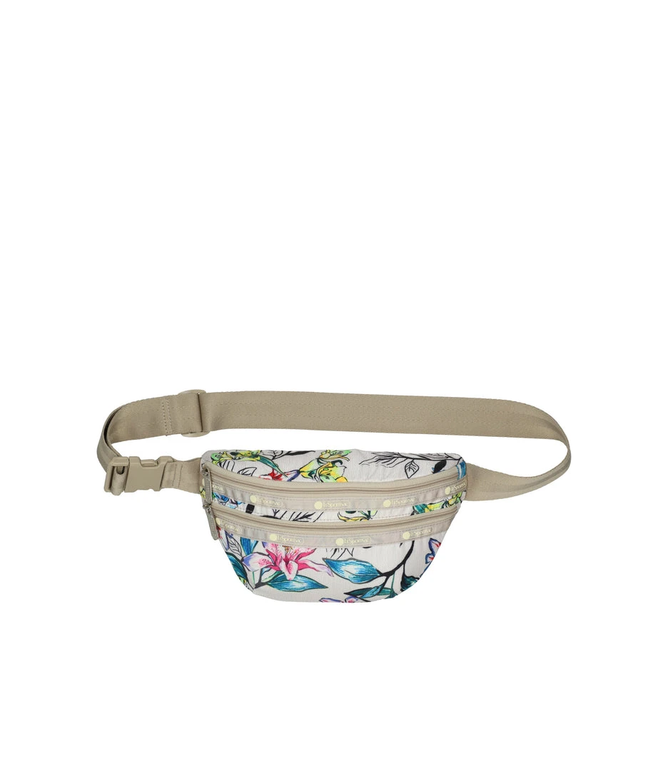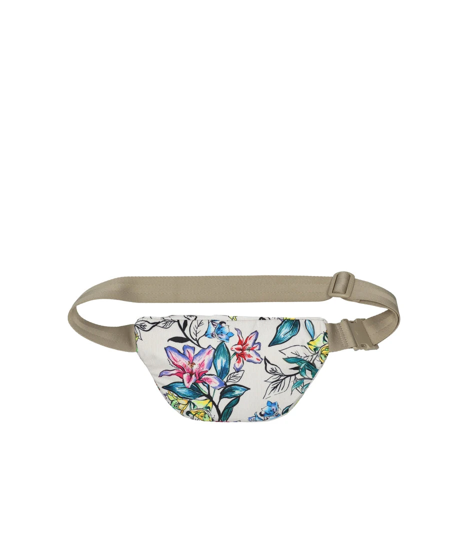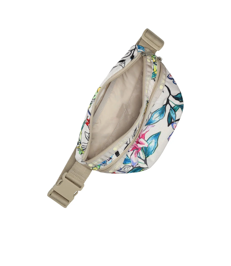 Zip main closure, Exterior front zip pocket, Two interior back wall open pockets, 1.5in/3.8cm wide adjustable belt strap (Max length: 45.27 in/115 cm, Min length 30.7 in/78 cm)
