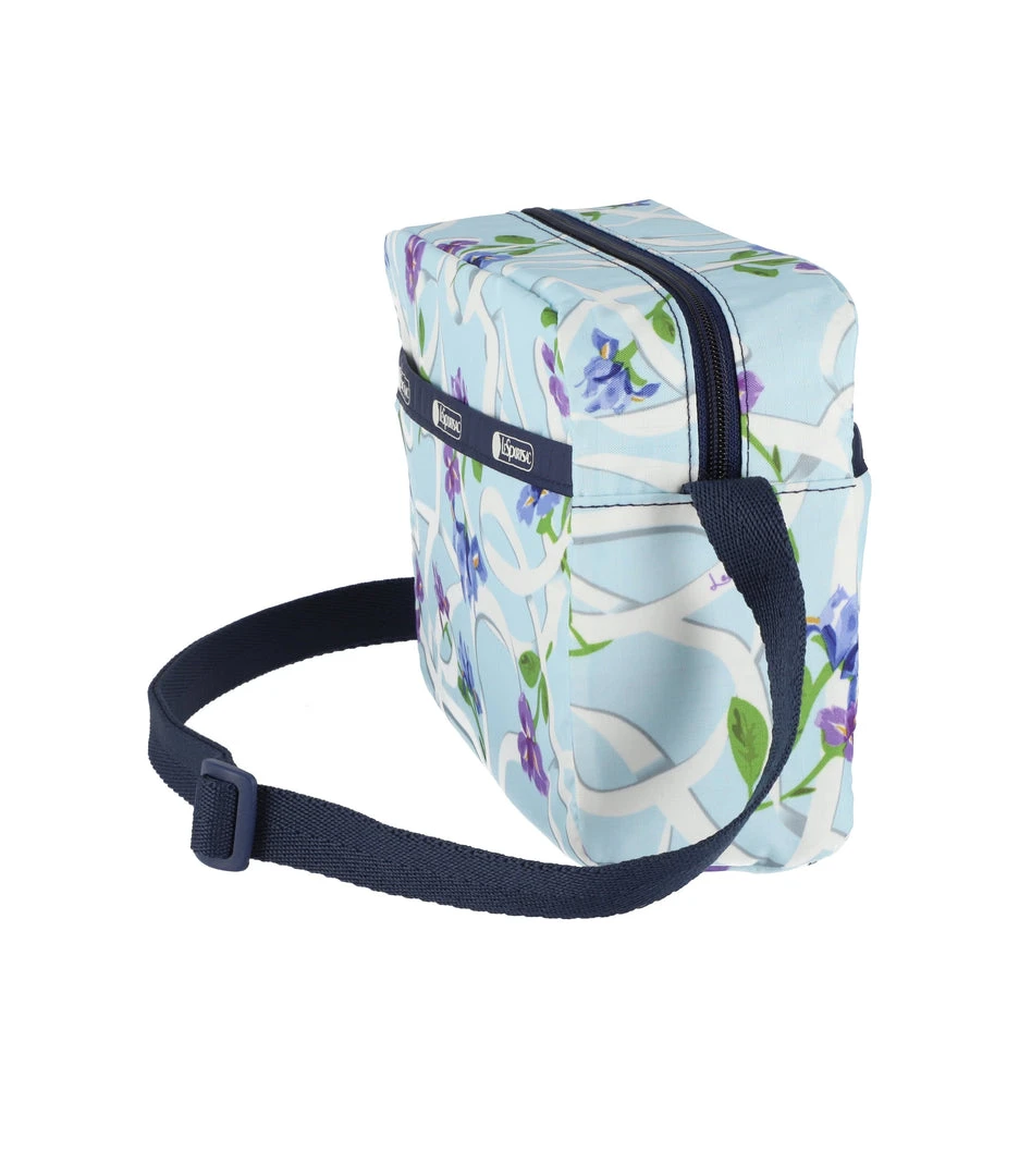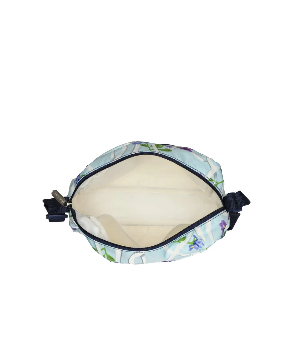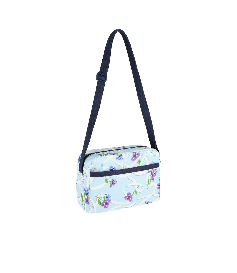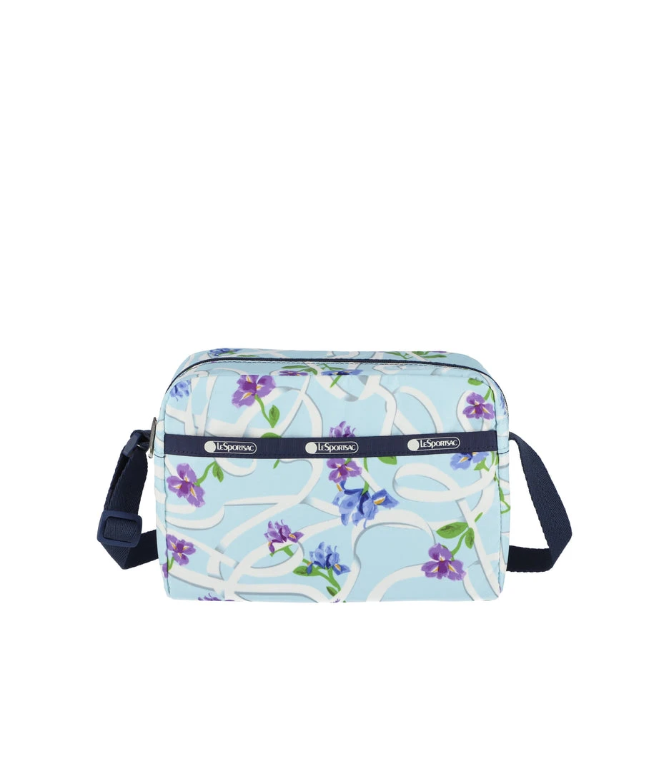 Zip top main closure, Exterior front pocket with zip closure, Exterior back pocket with zip closure, Adjustable crossbody strap (52in/132.08cm), Two interior back wall open pockets, Plastic hardware