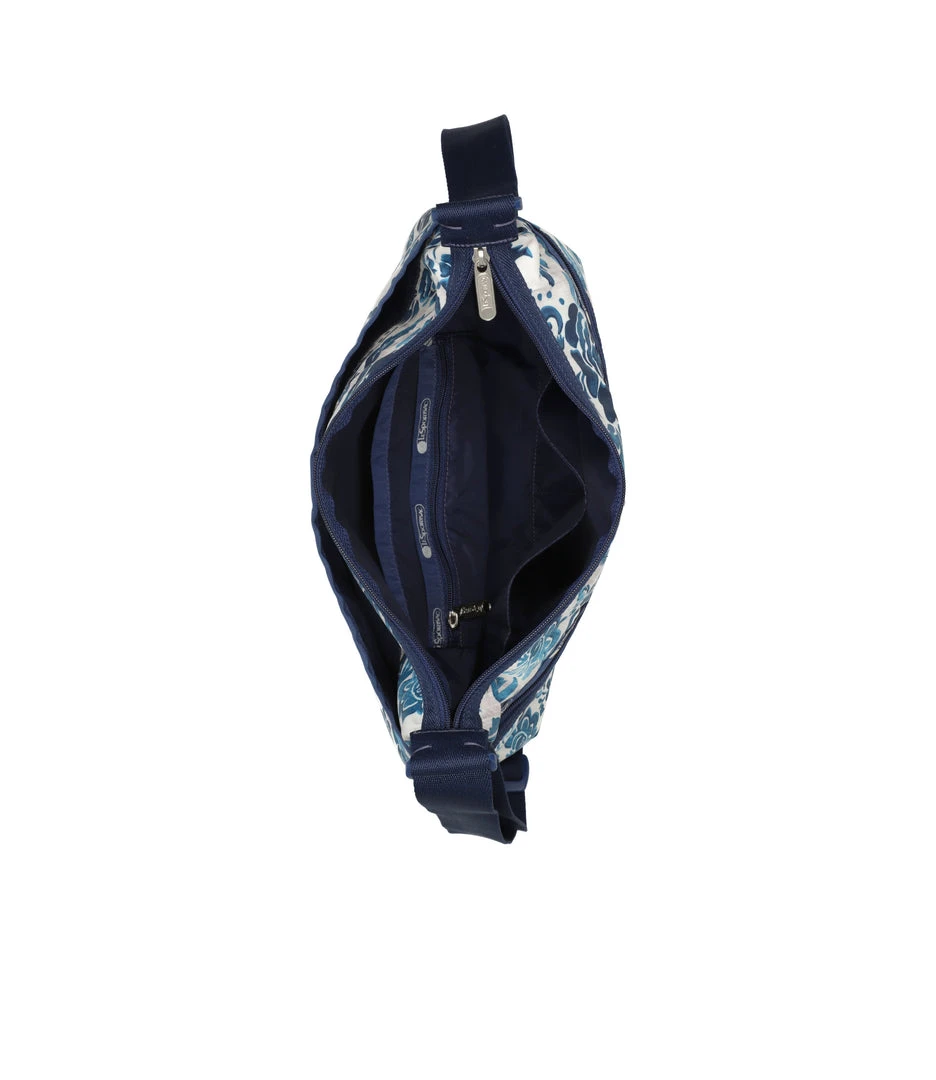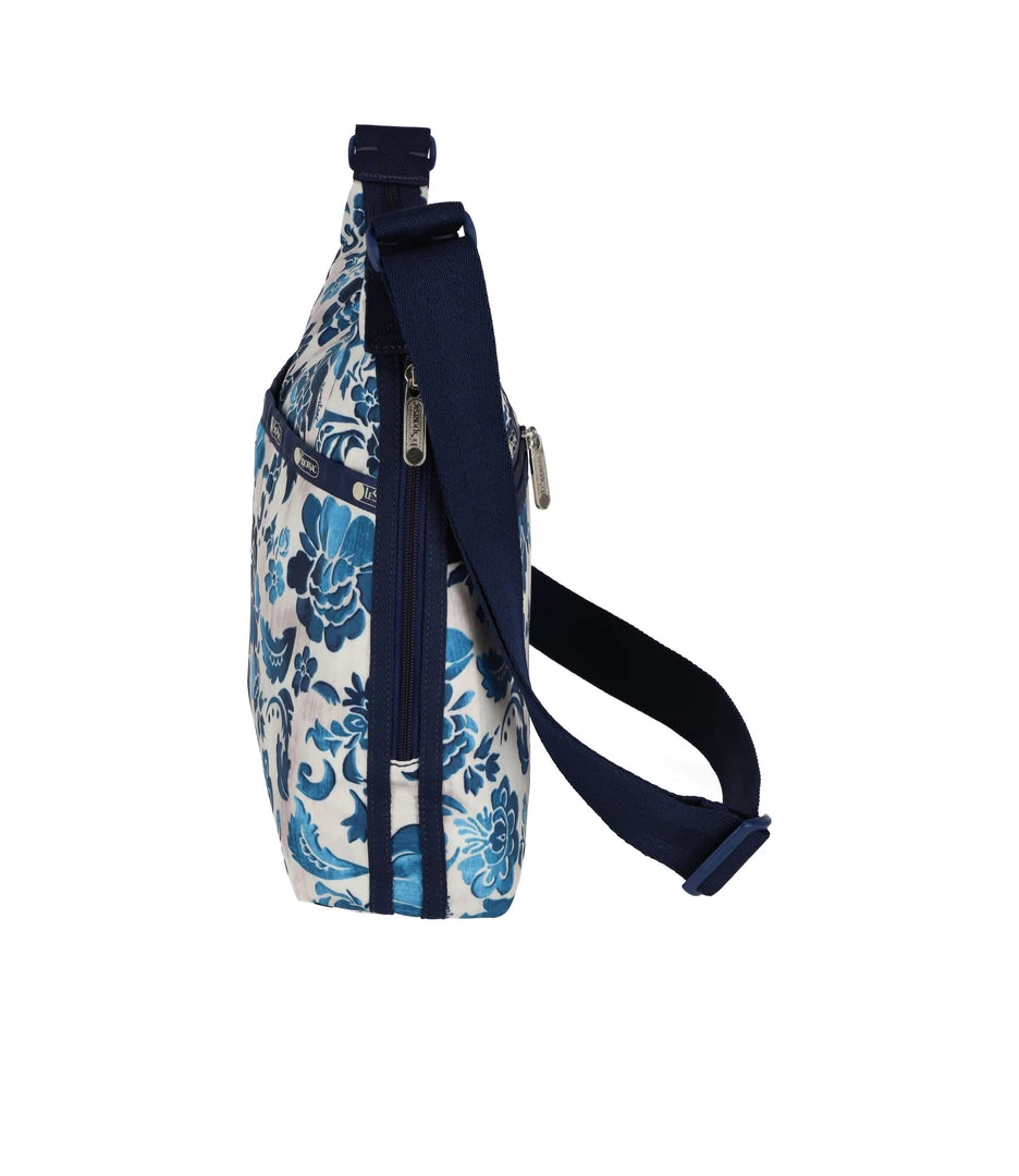 Zip main closure, Exterior front pocket with dual zip closure, Exterior back open pocket with magnetic snap closure, Two interior front wall open pockets, Interior back combination zip/open pocket with key loop on top of large open pocket, 1.5 in/3.8cm wide adjustable shoulder strap (Max length: 26.2 in/66.5 cm, Min length: 16.7 in/ 42.5 cm)