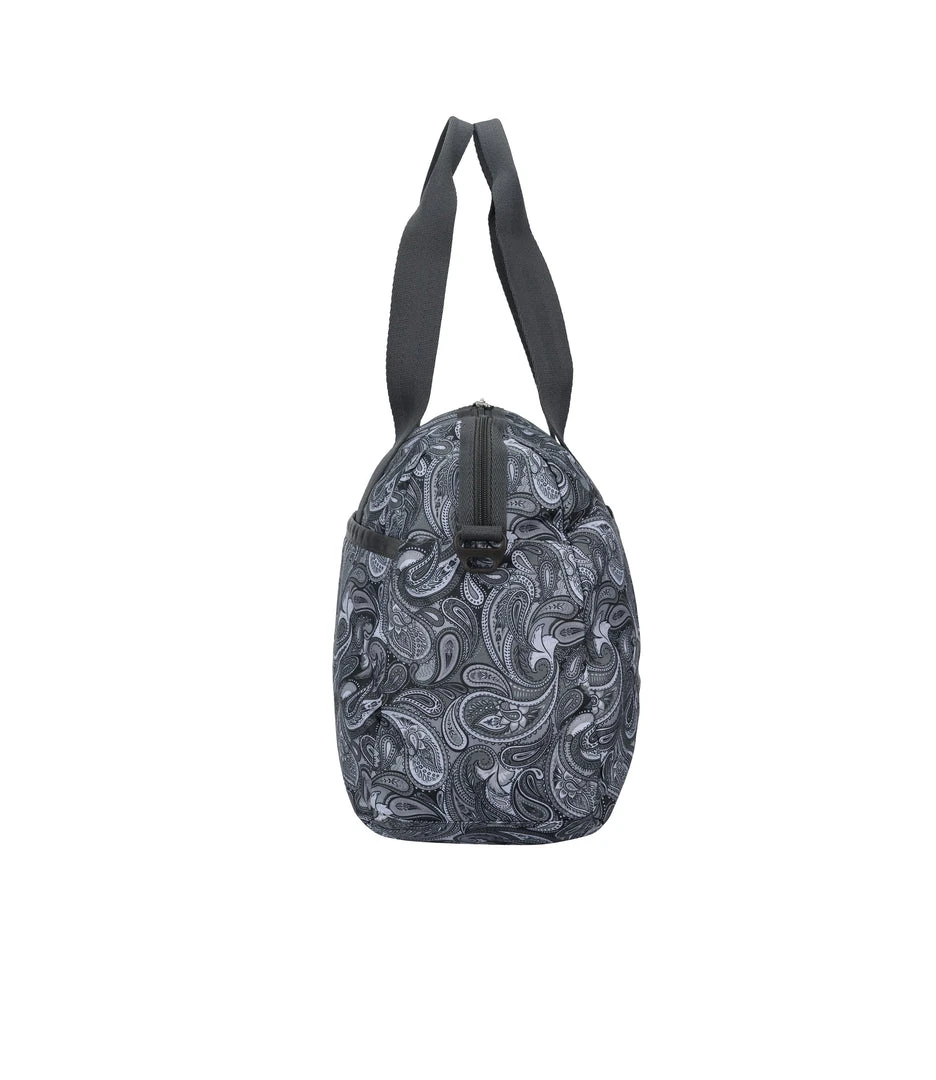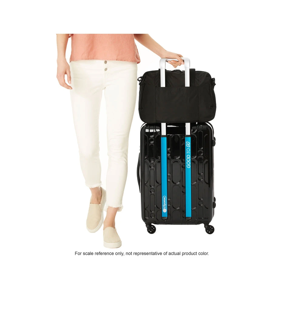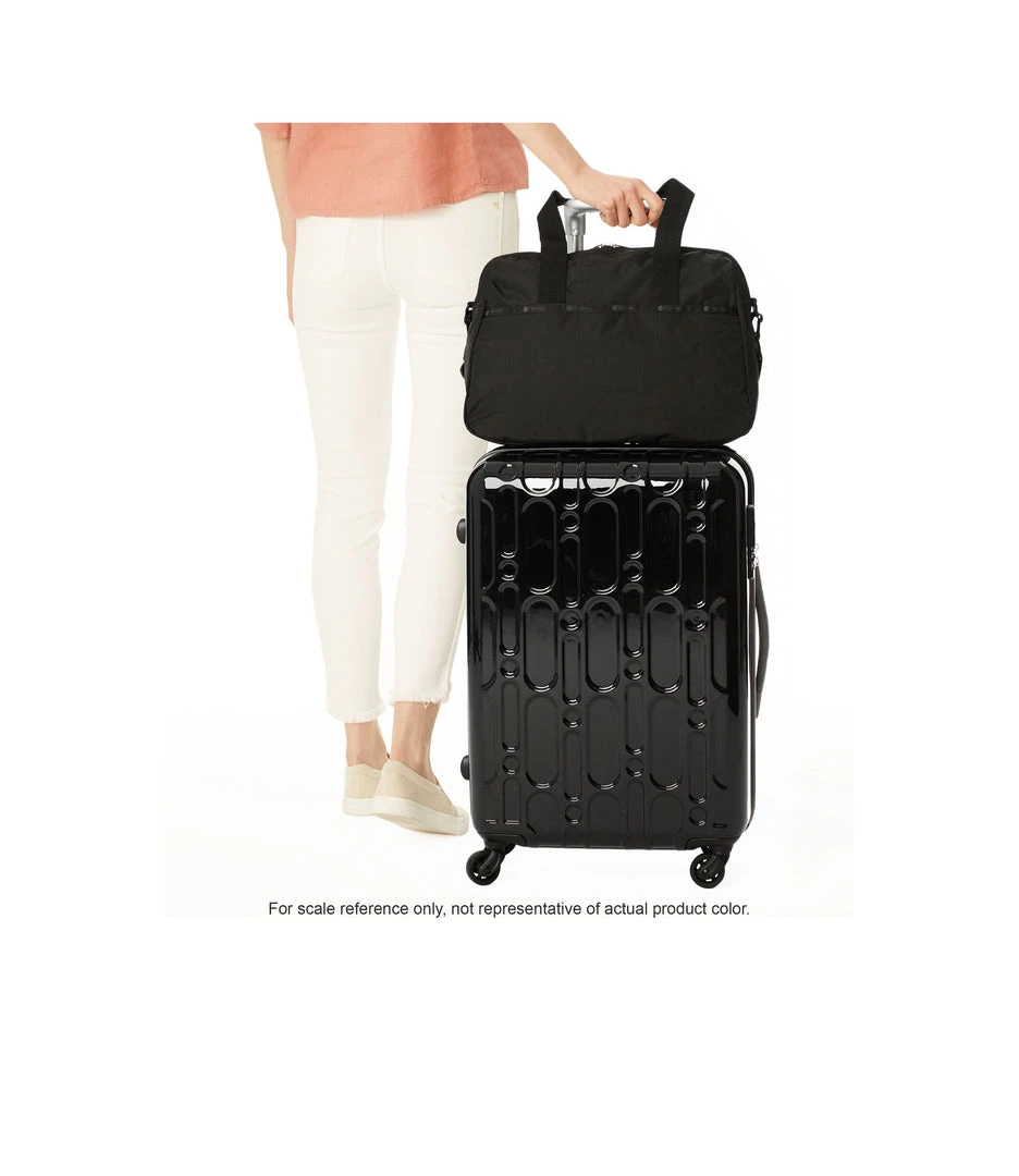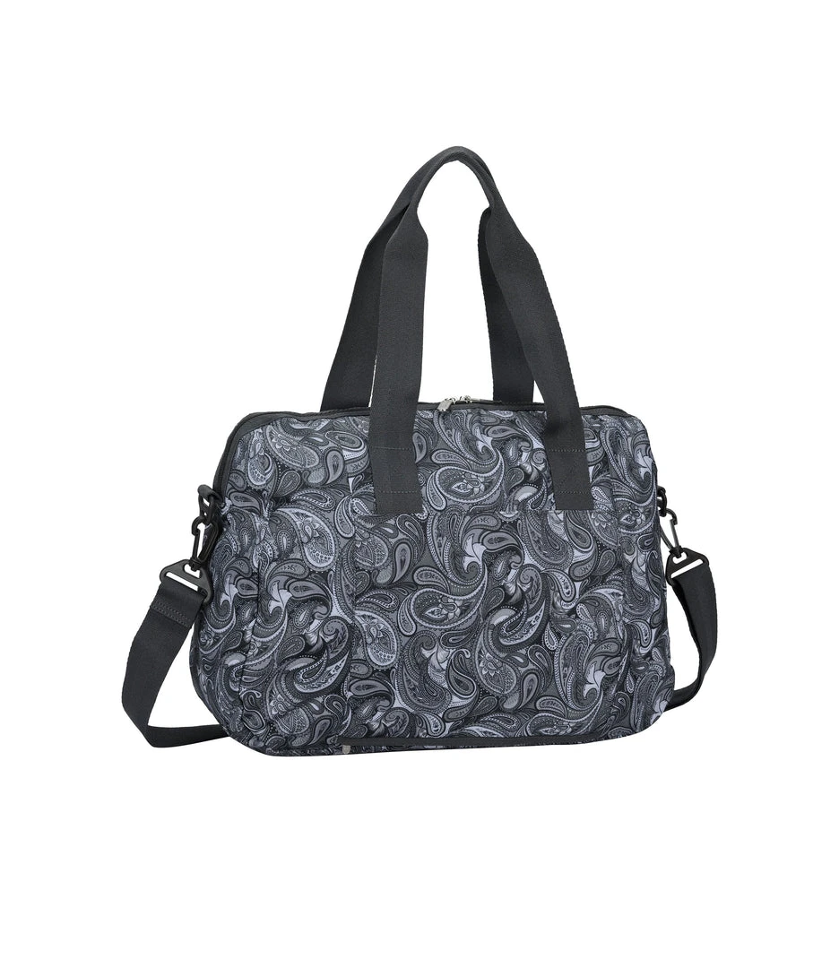 Zip main closure with dual zipper pulls, 8.5in (21.59cm) Handle drop, Exterior front pocket with zip closure, Exterior back pocket with bottom zipper to convert into a sleeve (to slide over rolling luggage handles), Adjustable/detachable shoulder strap (Max. 51.5in/130.81cm) with plastic hardware, Interior front wall zip closure pocket, Interior back wall laptop compartment (fits laptops up to 15in)