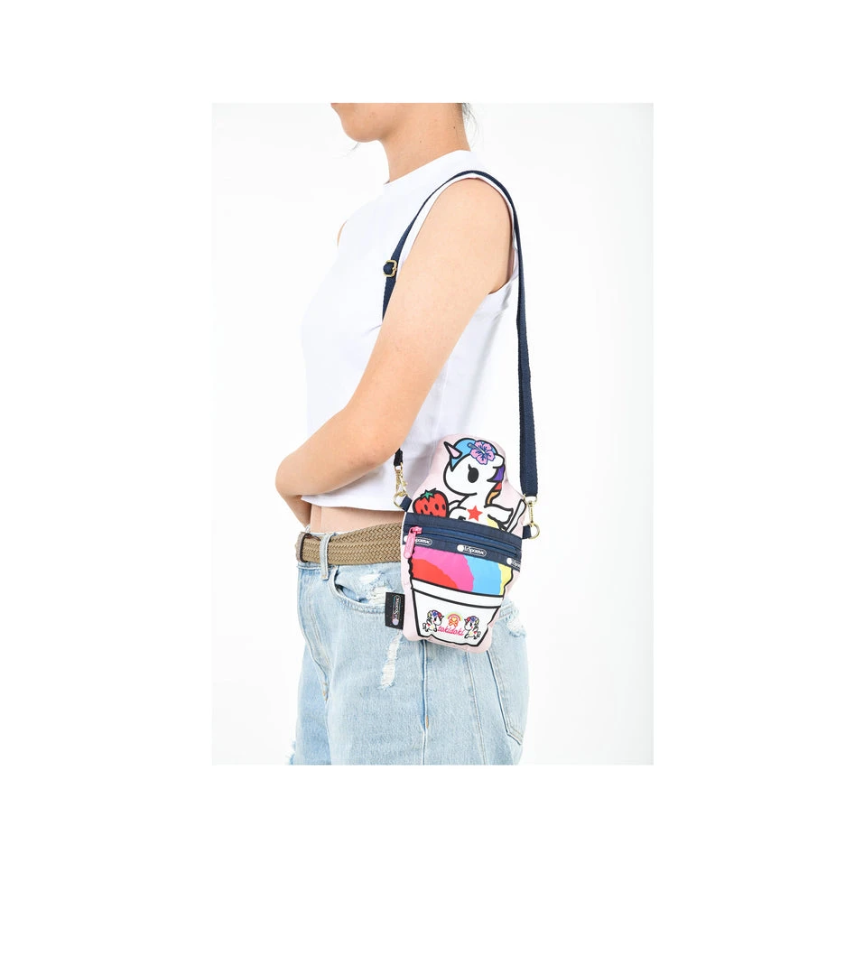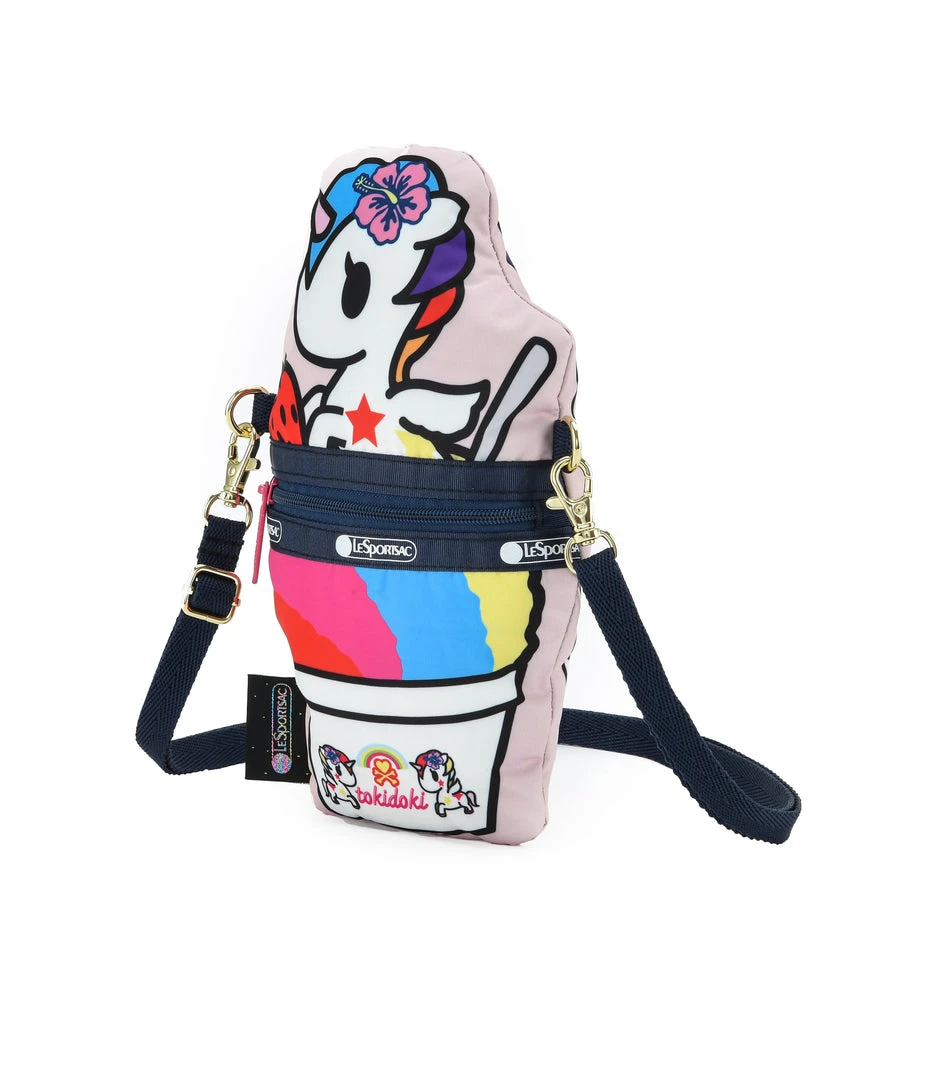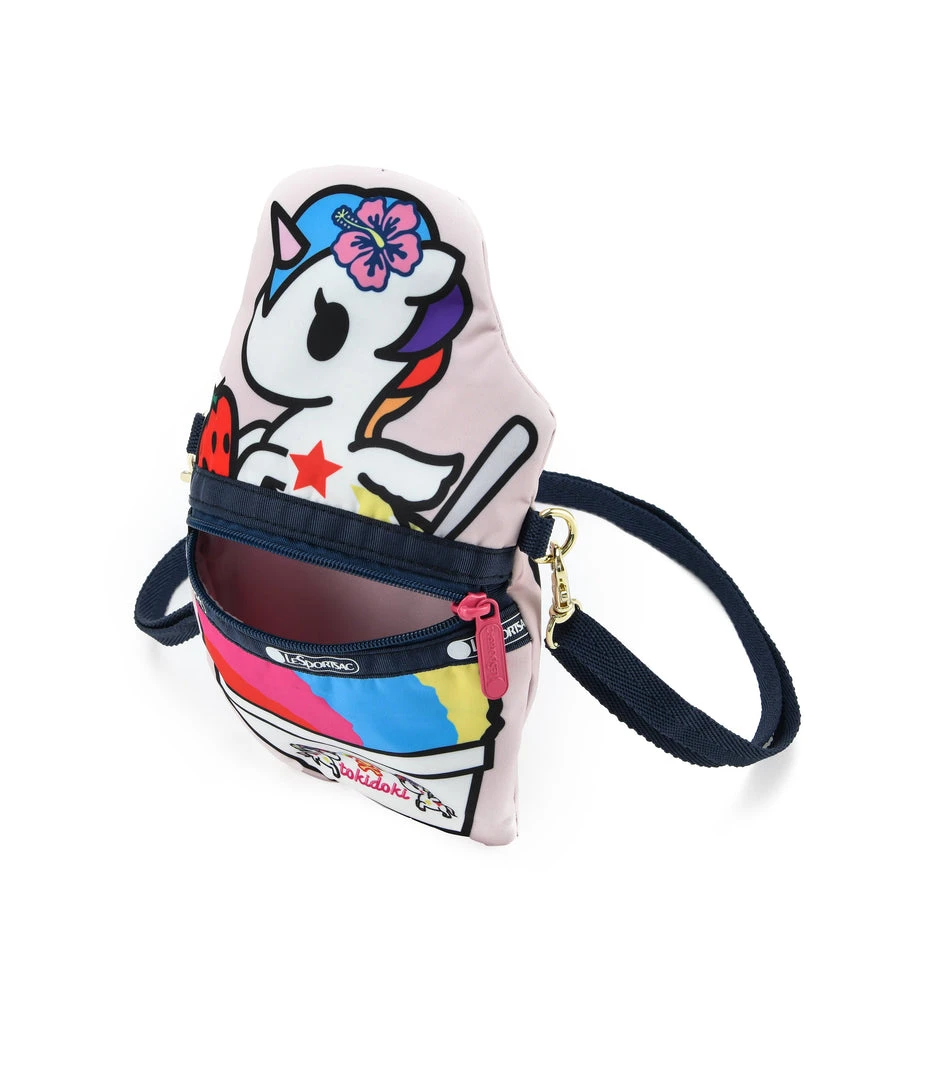 Main compartment is accessible through a horizontal zipper on the back panel, Adjustable/detachable crossbody strap (Min Length:28in/71.1cm, Max Length: 52in/132.1cm) with gold-tone hardware