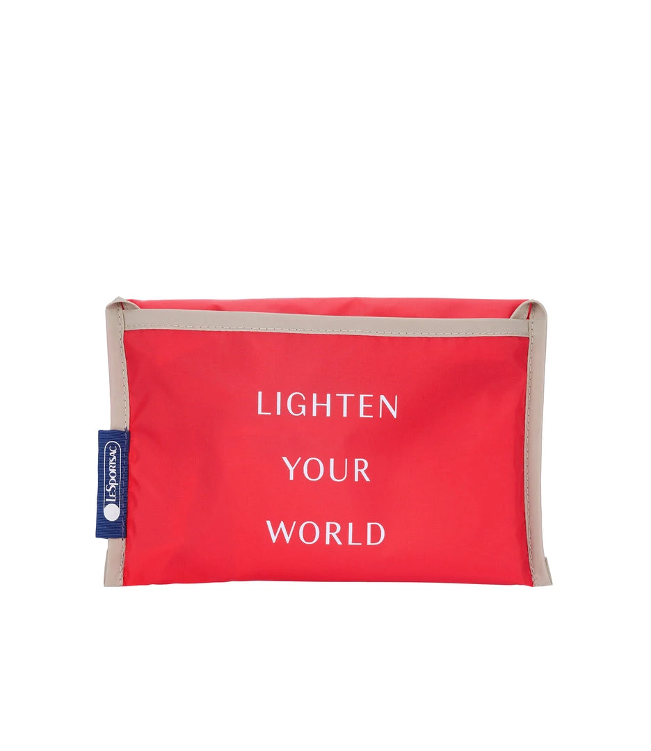 Lightweight tote that folds into itself in an interior pocket for easy on-the-go portability, Features silk-screen printed logo and text, Integrated fabric handles (11.3in/28.7cm handle drop)