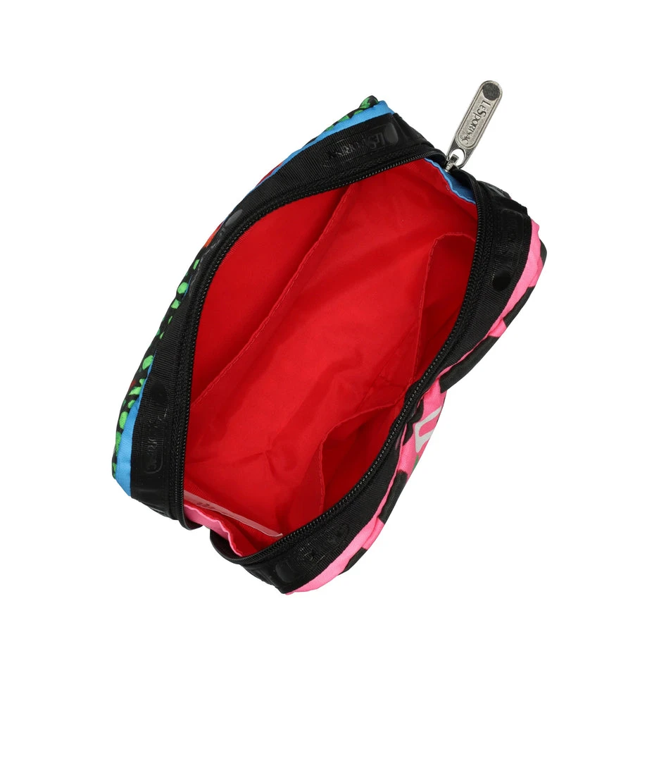 Zipped main closure, Interior back wall open pocket, Two interior front wall open pockets