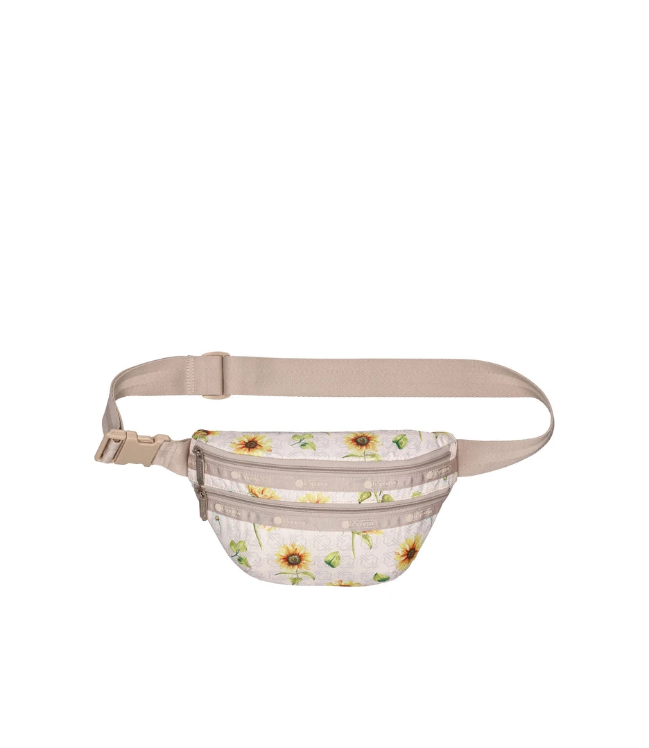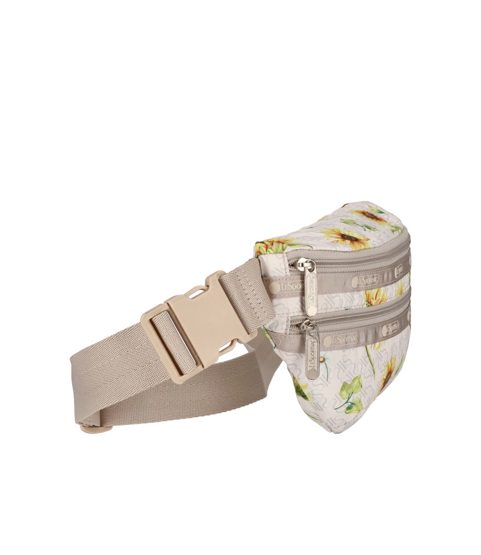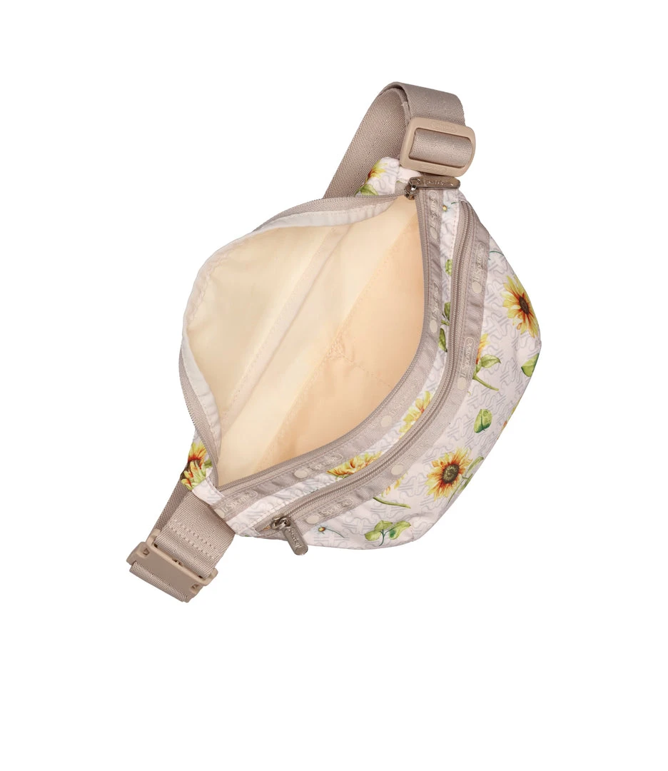 Zip main closure, Exterior front zip pocket, Two interior back wall open pockets, 1.5in/3.8cm wide adjustable belt strap (Max length: 45.27 in/115 cm, Min length 30.7 in/78 cm)