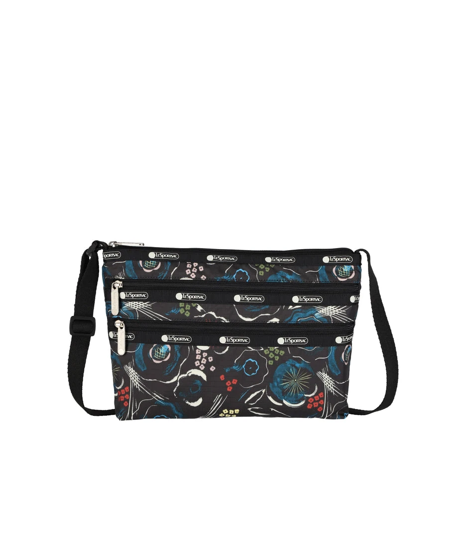 Zip main closure, Two exterior front pockets with zip closures, Adjustable crossbody strap (Max. 50.25in / 127.64cm), Two interior back wall open pockets