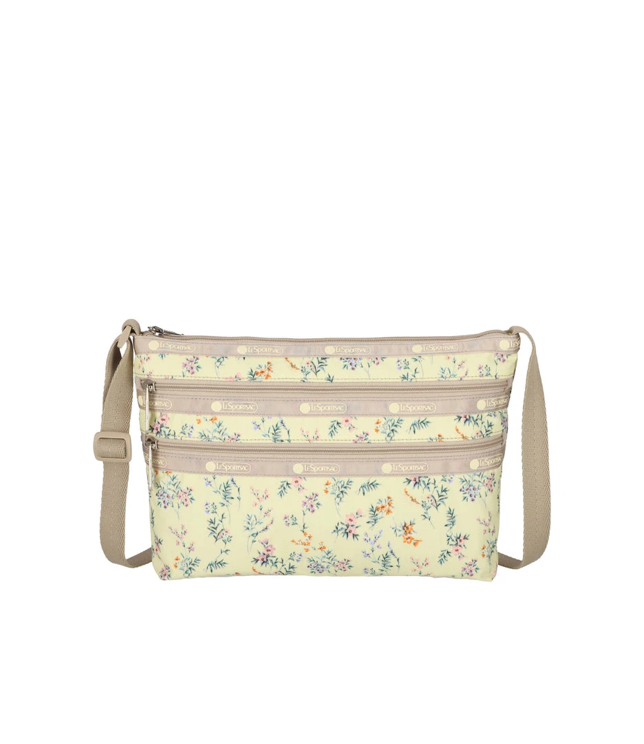 Zip main closure, Two exterior front pockets with zip closures, Adjustable crossbody strap (Max. 50.25in / 127.64cm), Two interior back wall open pockets
