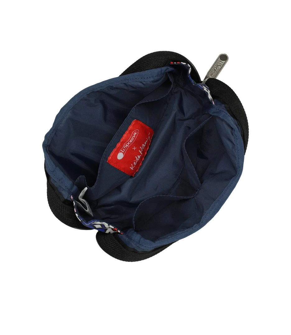 Zipped main closure, Interior back wall open pocket, Two interior front wall open pockets