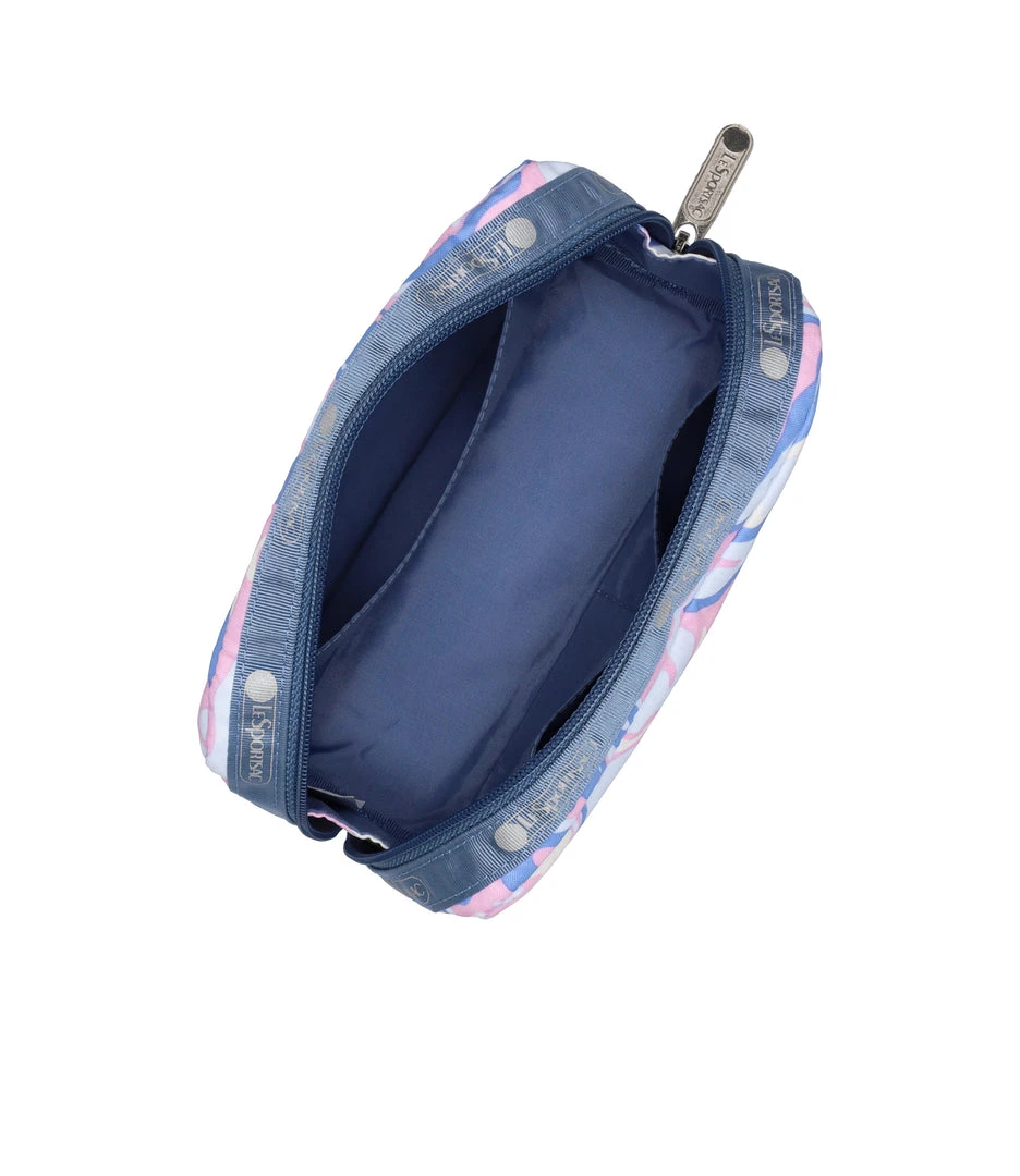 Zipped main closure, Interior back wall open pocket, Two interior front wall open pockets