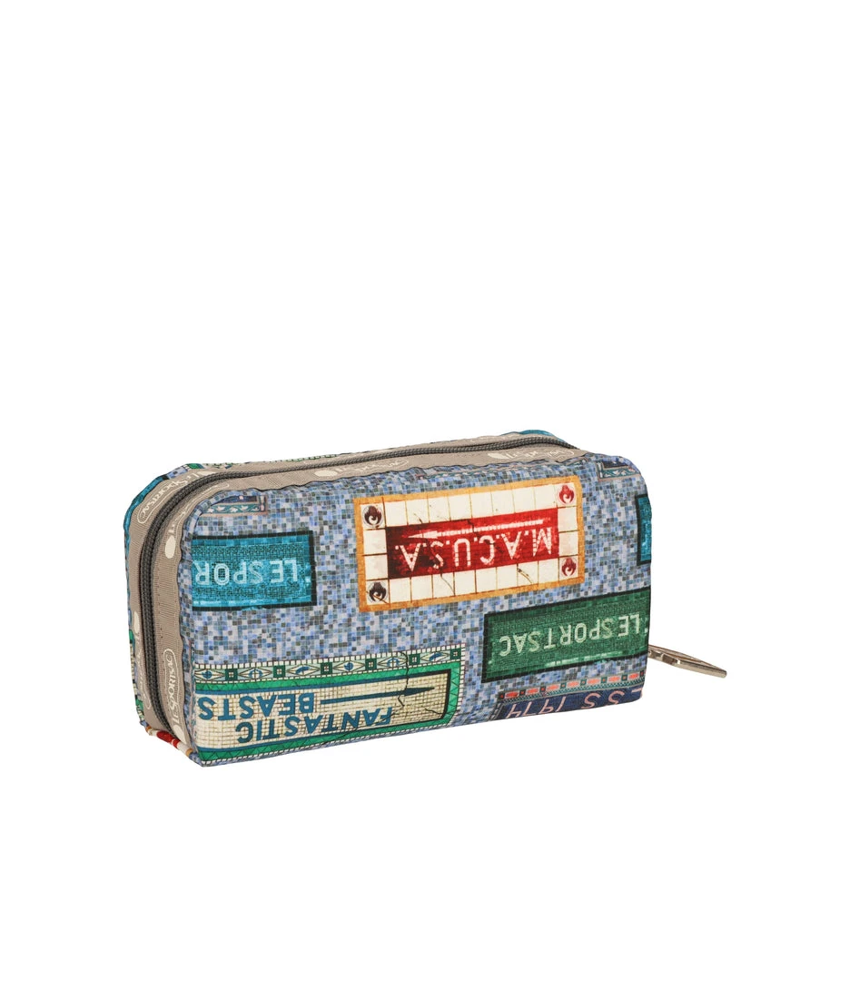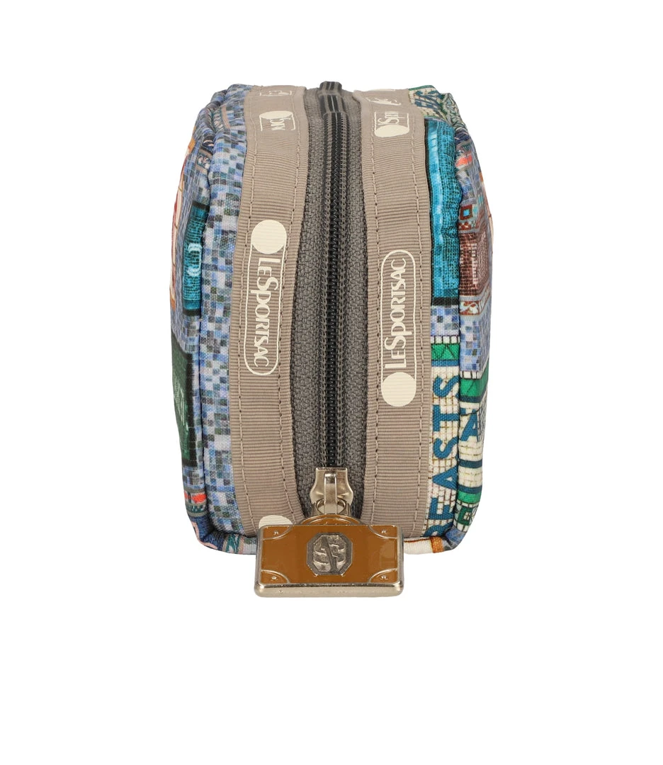 Zipped main closure, Interior back wall open pocket, Two interior front wall open pockets