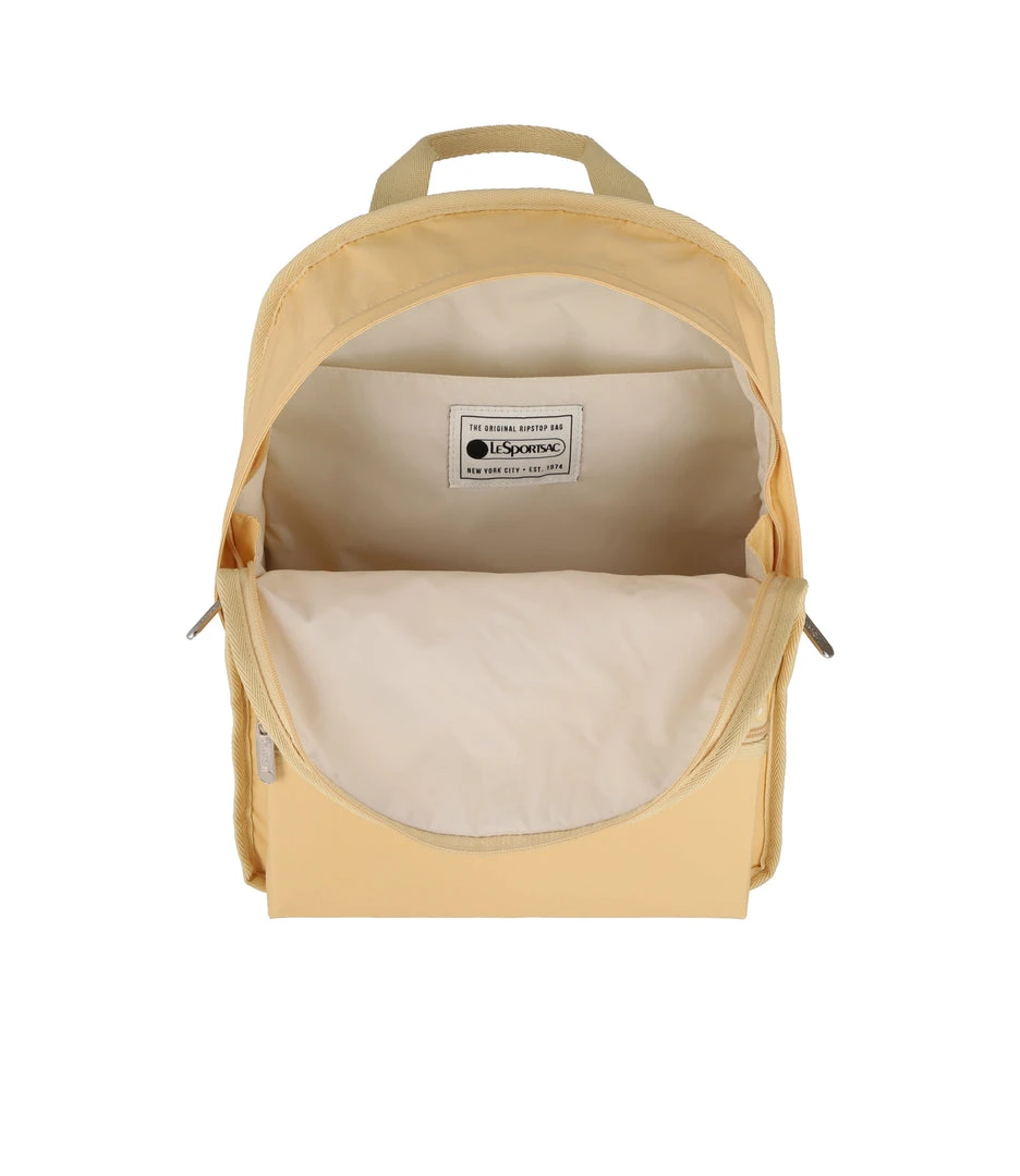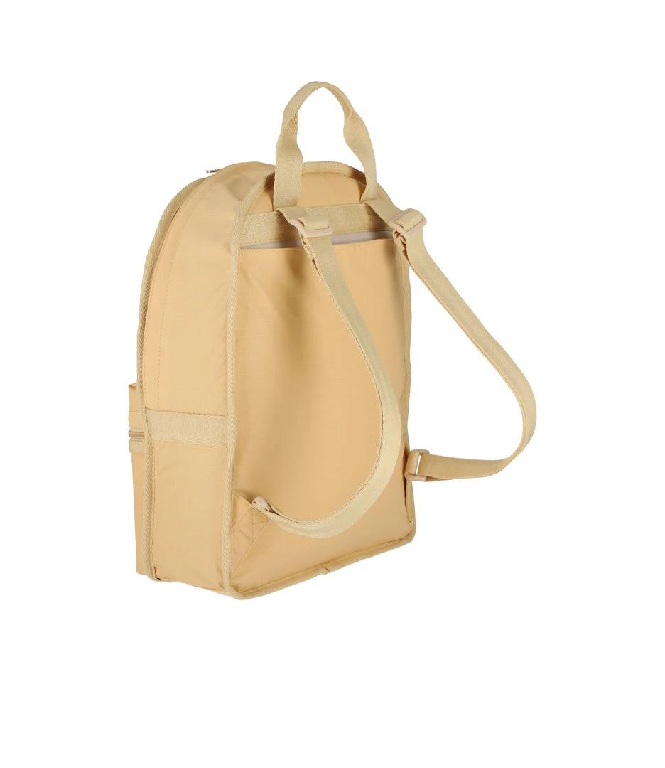 Zip main closure with dual zipper pulls, Exterior front zip closure pocket, Exterior top back open pocket (behind the shoulder straps), Interior back wall open pocket, 1in/2.5cm wide top handle (Drop: 3 in/7.5cm, Length: 10.43 in/26.5 cm), 1in/2.5cm wide adjustable shoulder straps (Max length: 28 in/71 cm)
