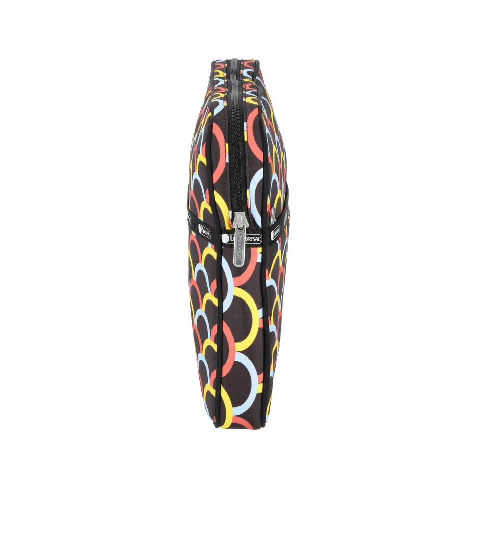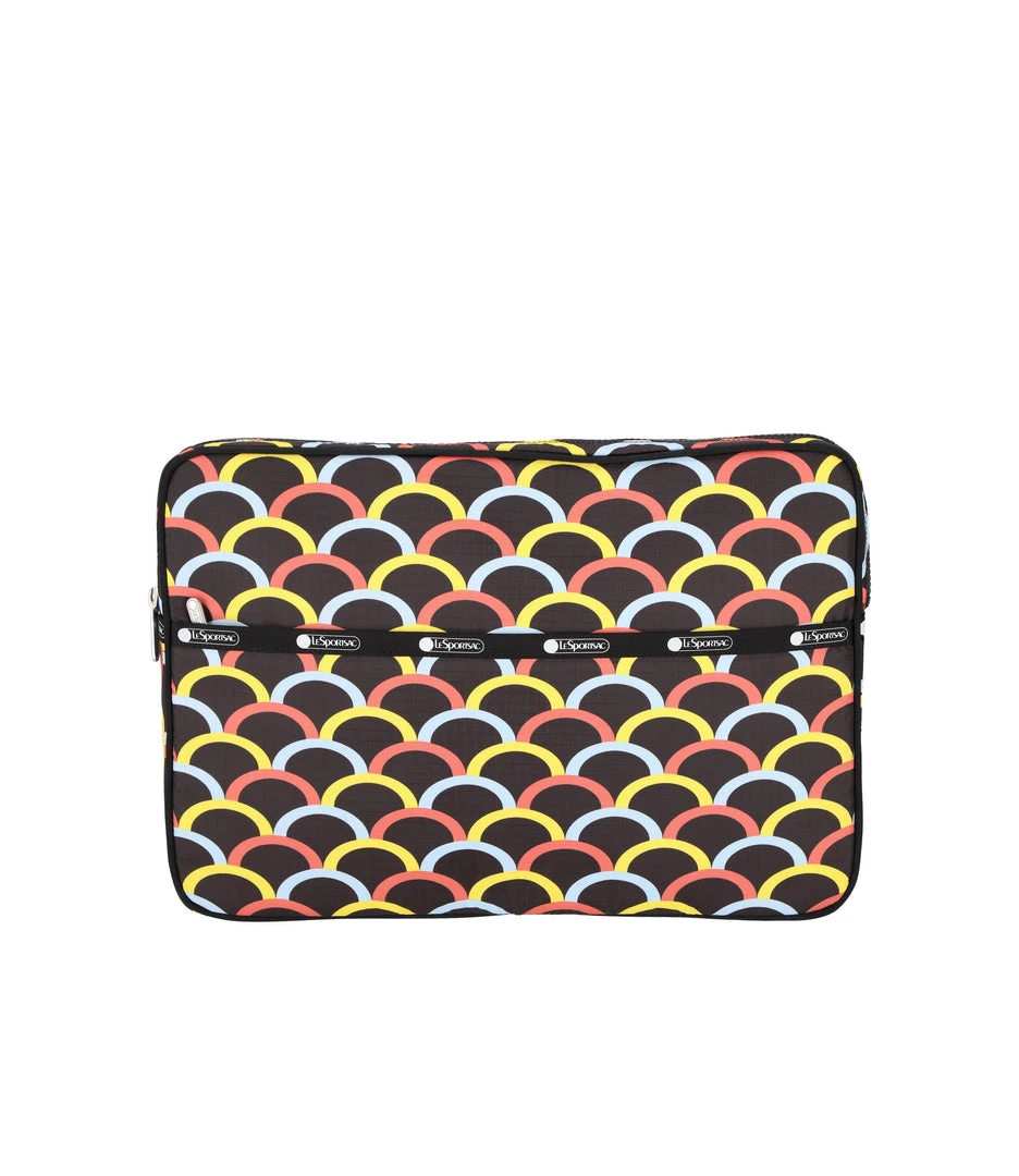 Zip main closure, Exterior front pocket with zip closure, Interior back wall features a padded laptop pocket (fits most 15 inch laptops), Piped edges for added structure