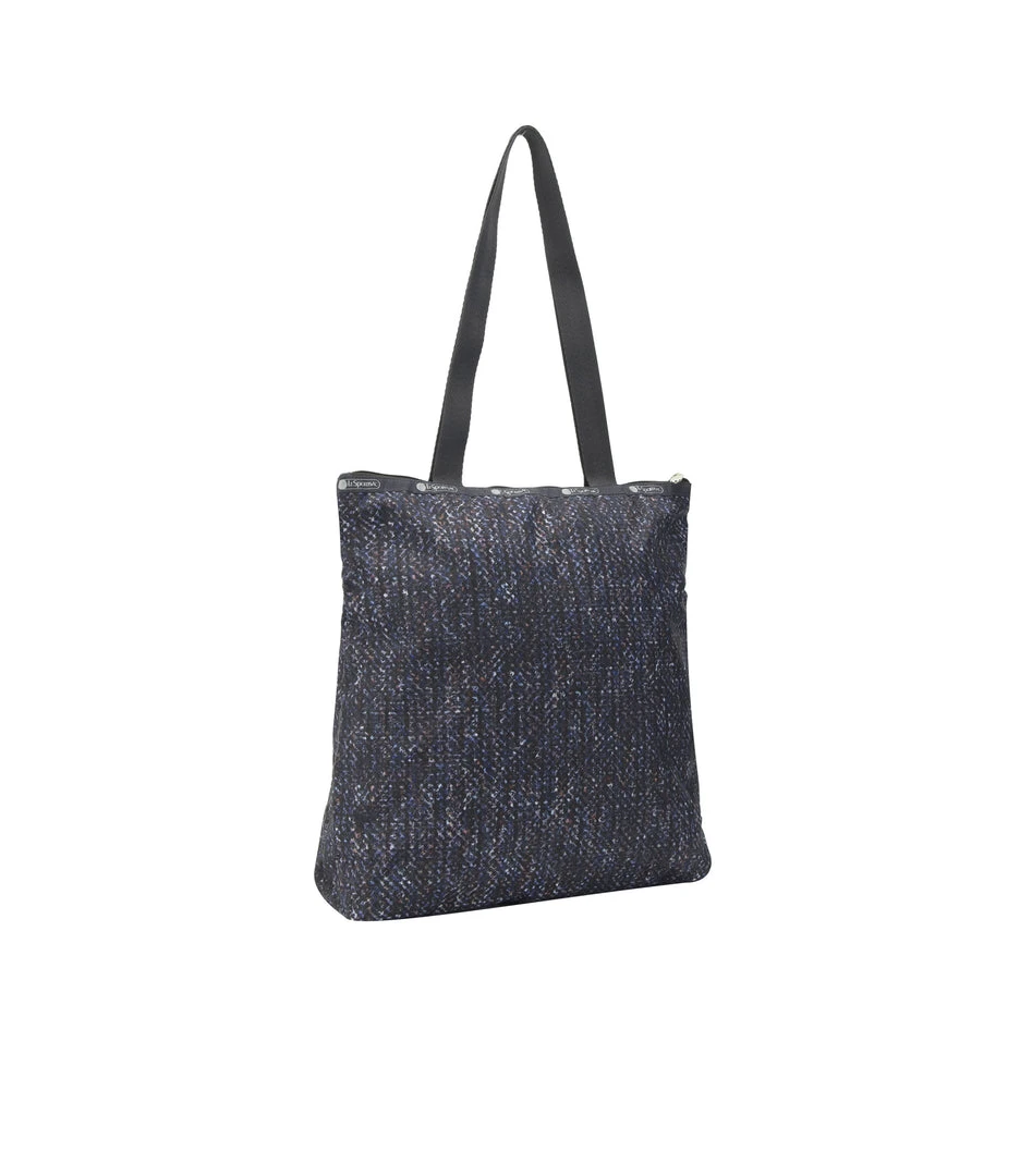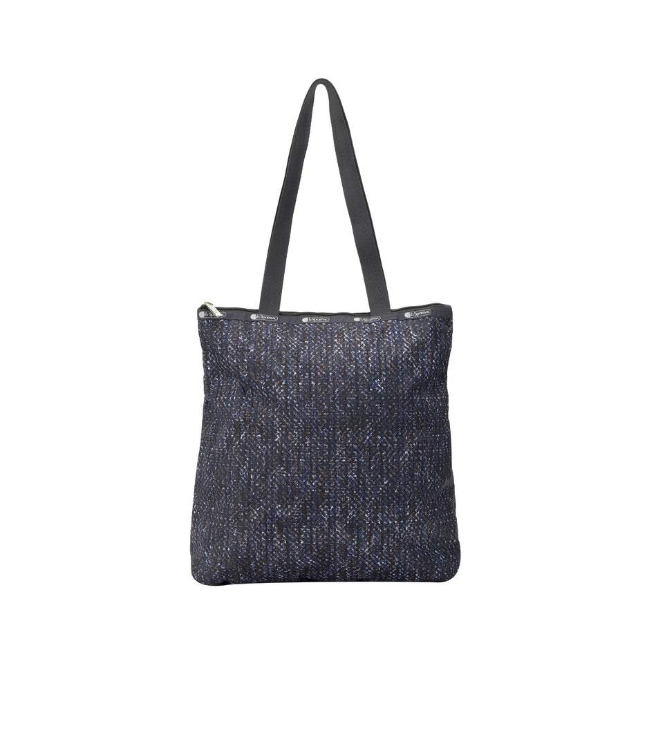 Zipped main closure, 1in (2.5cm) wide top handles (Length: 24.6 in/62.5 cm), Interior back wall combination zip/open pocket