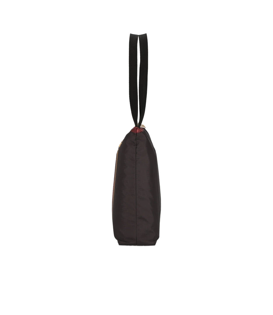 Zipped main closure, 1in (2.5cm) wide top handles (Length: 24.6 in/62.5 cm), Interior back wall combination zip/open pocket